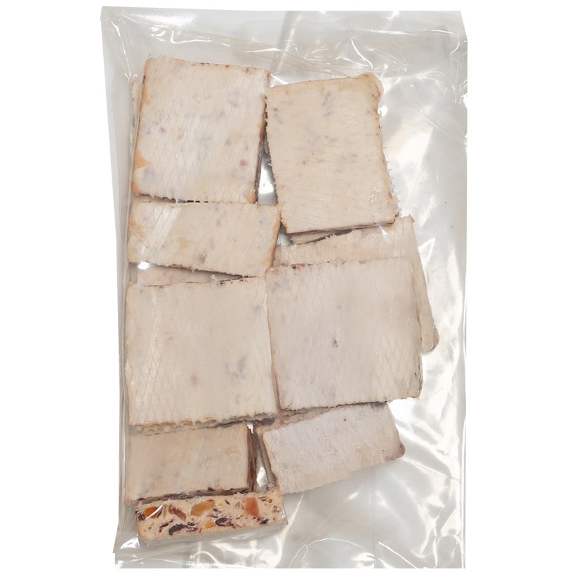 Texture fondante : Un nougat aérien qui met en valeur le moelleux des fruits séchés.