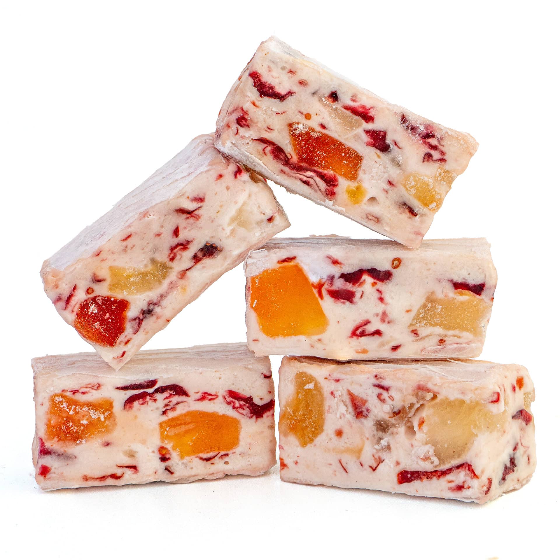 Nous apportons le même soin à nos nougats fruités qu’à nos recettes classiques, en choisissant des fruits de qualité.